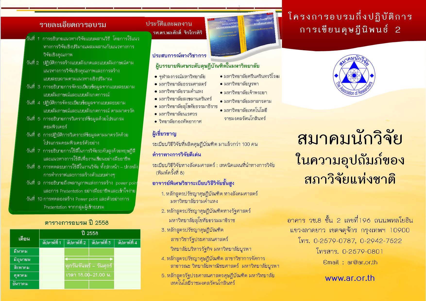 หลักสูตร : โครงการฝึกอบรมกึ่งปฏิบัติการการเขียนดุษฎีนิพนธ์ 2 (หลักสูตรต่อเนื่อง) รุ่นที่ 2