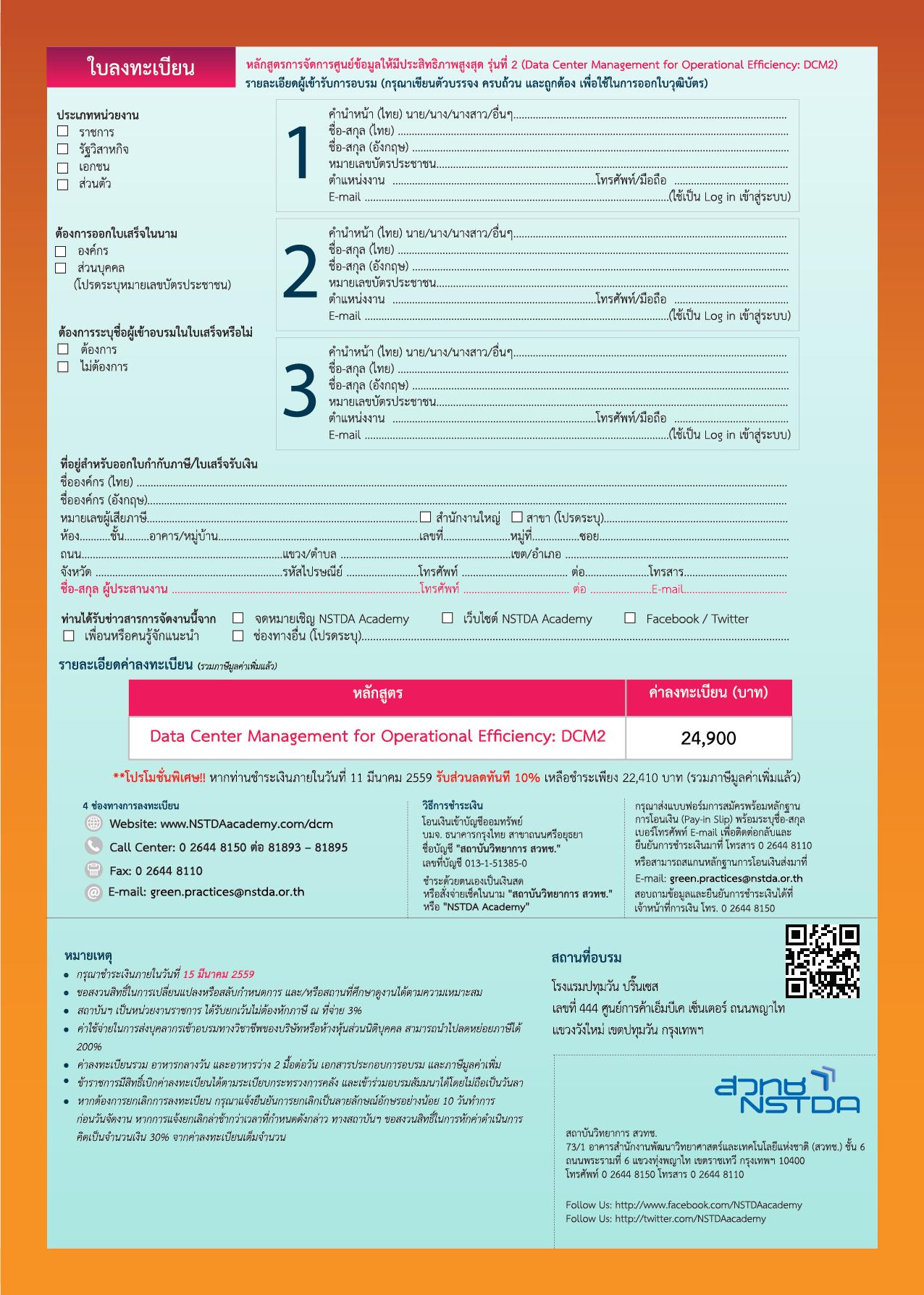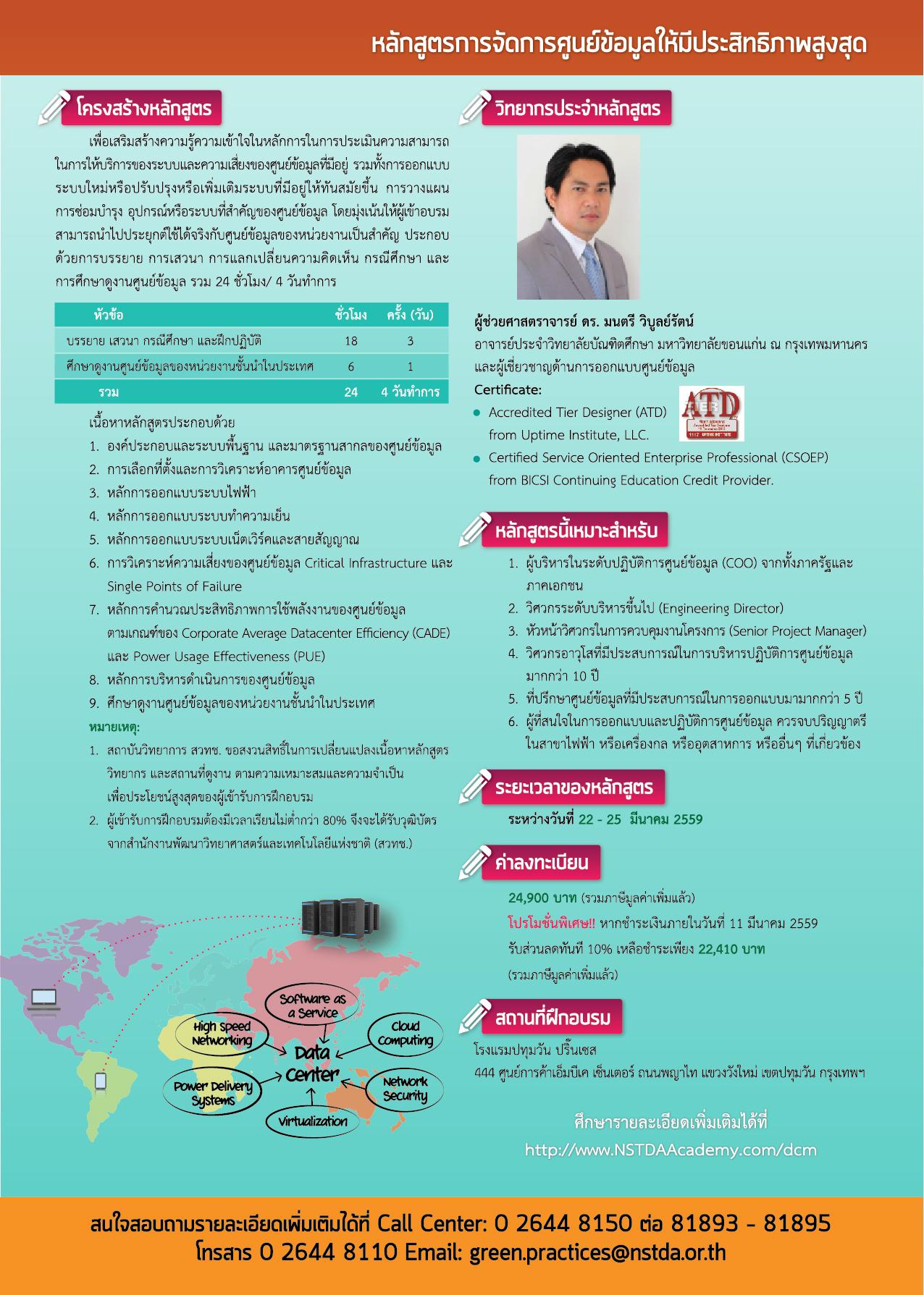หลักสูตร : Data Center Management for Operational Efficiency : DCM 2 วันที่ 22 March - 25 March 2016