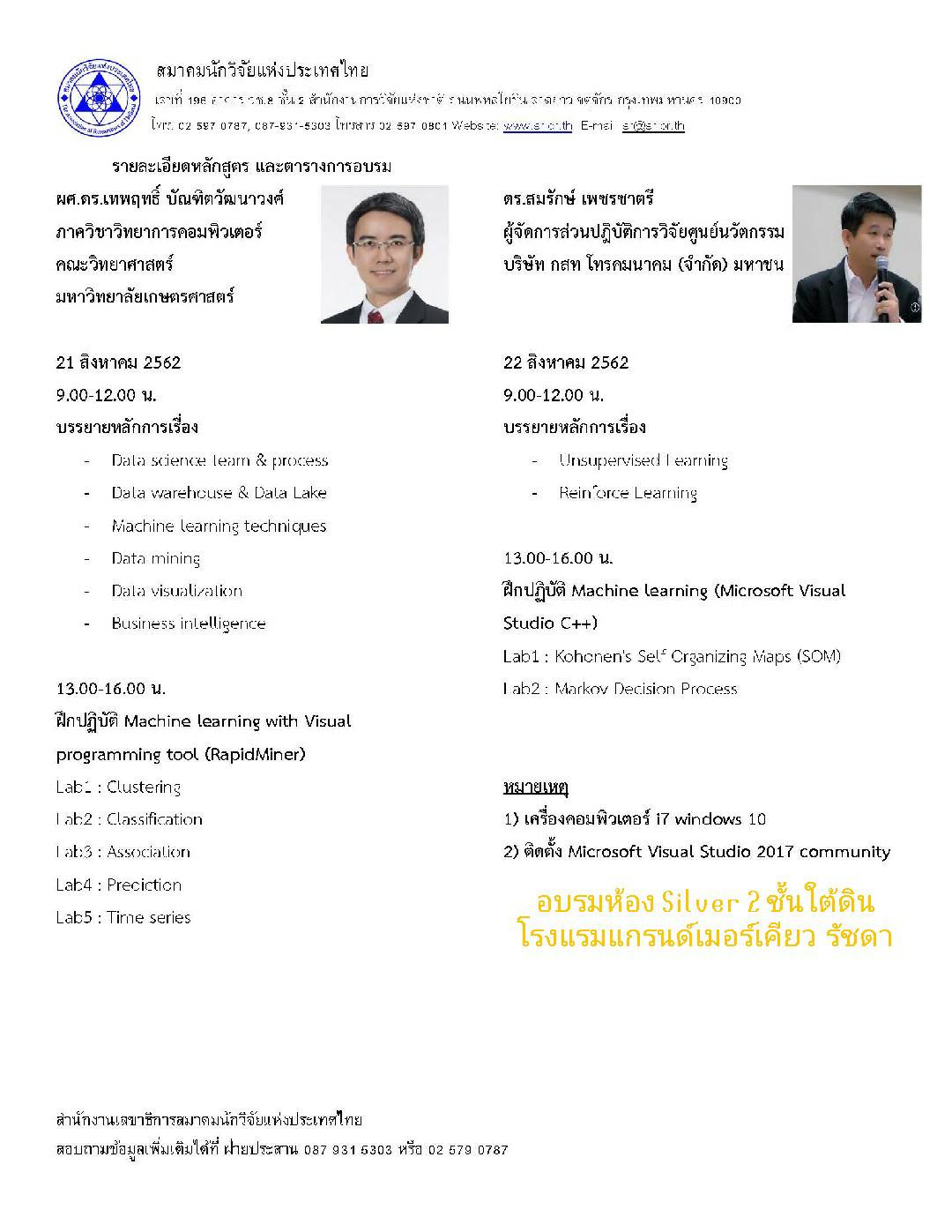 วิทยากร : ผศ.ดร.เทพฤทธิ์ บัณฑิตวัฒนาวงศ์ และ ดร.สมรักษ์ เพชรชาตรี